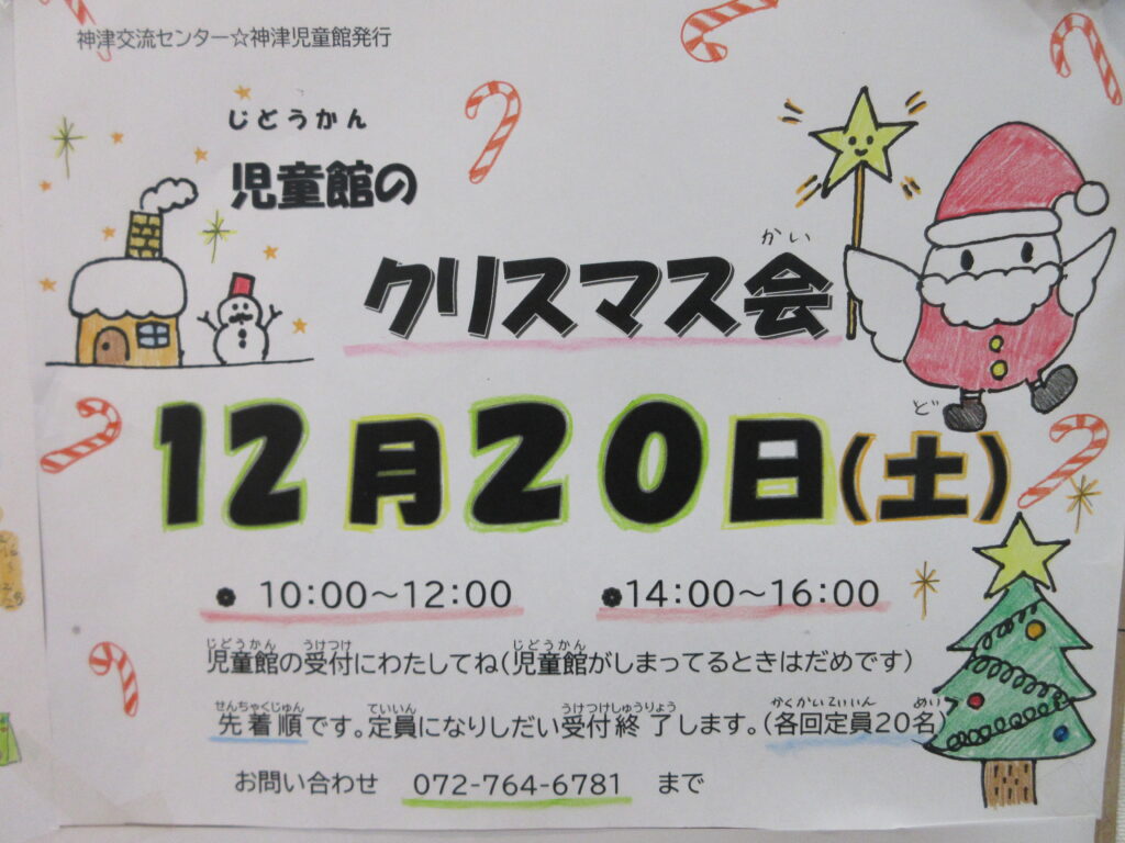 12月の児童館は12月20日(土)にクリスマス会があります。